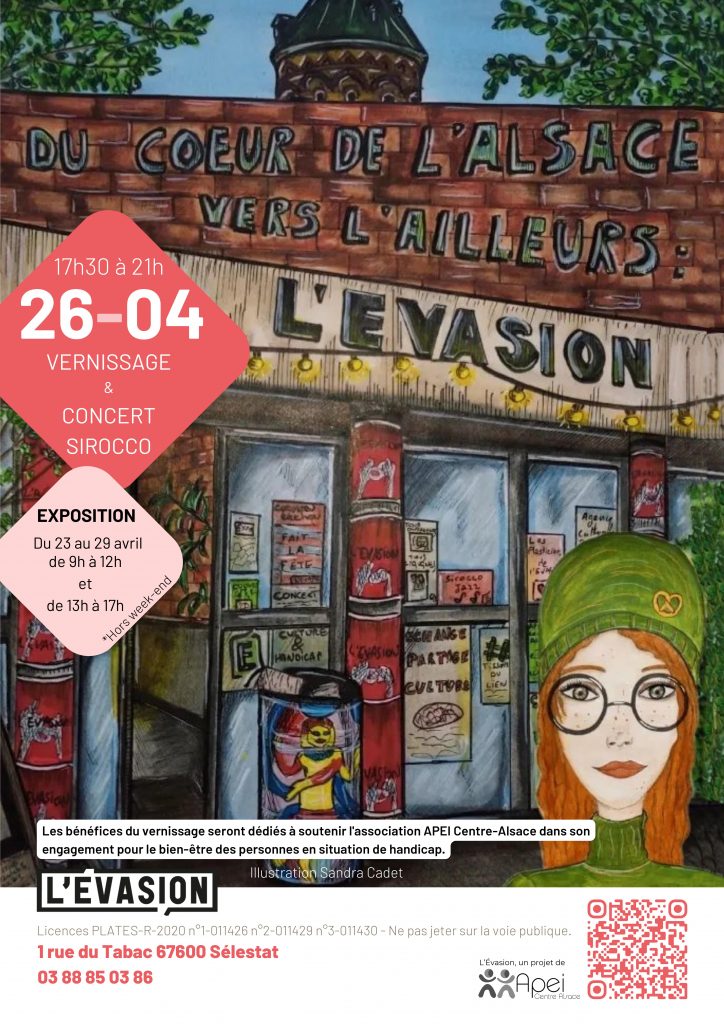 Du 23 au 29 avril (hors week-end), une exposition se tiendra à L’Évasion, mettant en lumière les œuvres de Sandra Cadet. Sandra Cadet offre une perspective de l’Alsace à travers ses créations. Telle une cigogne voguant à travers les paysages enchanteurs de la région, elle peint son périple avec un langage graphique vibrant et coloré.